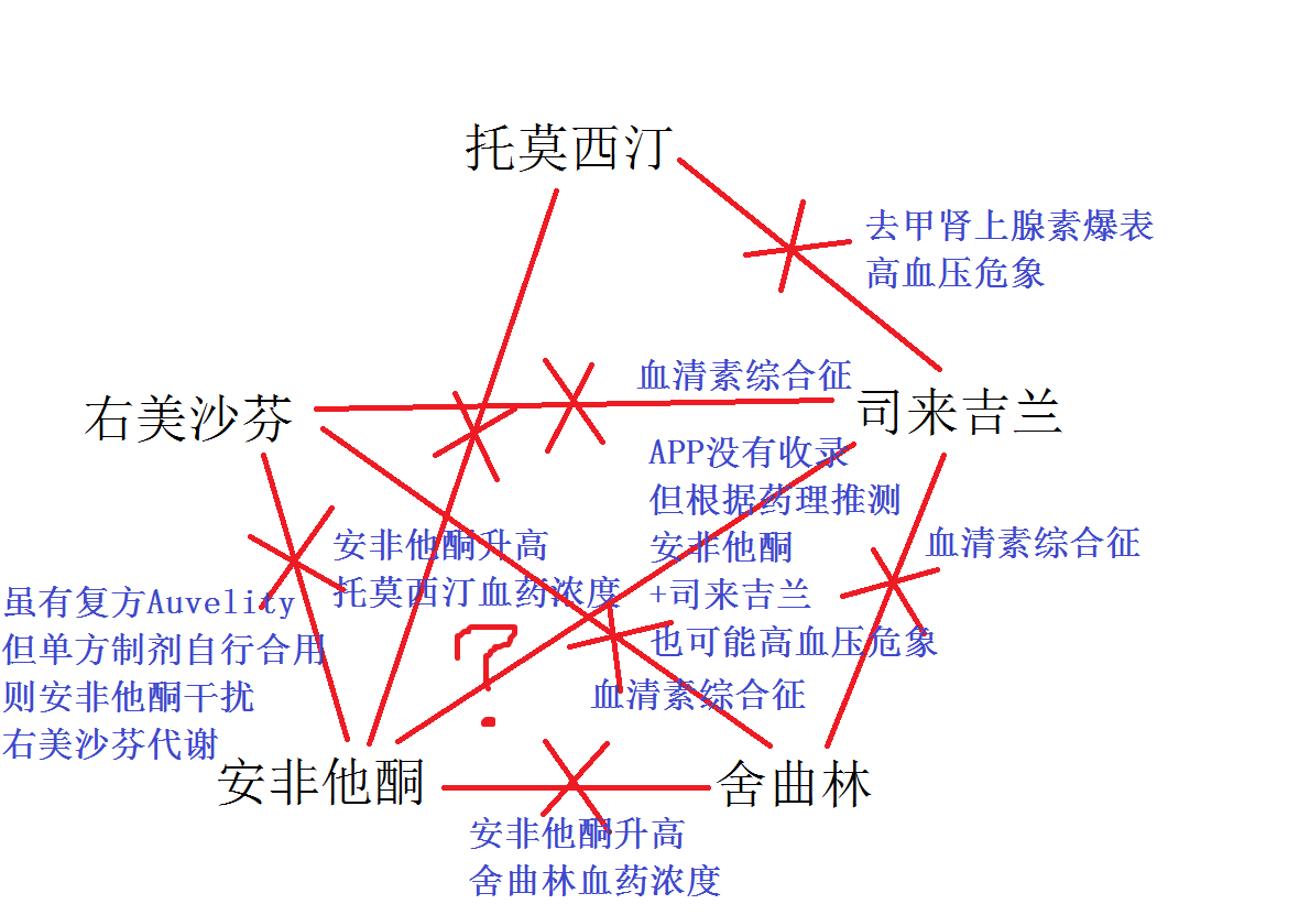 除了安非他酮、帕罗西汀,其他都不会强化抗胆碱与解离