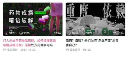 虽然内容创作者抱有善良的目的,他们的语言隐含的态度却不能表现出这点。以冷却报告的“打入未成年药物滥用群,如何读懂暗语破解成瘾过程”这一标题为例: